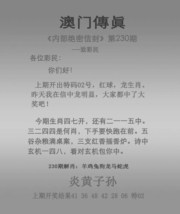 230期澳門傳真圖